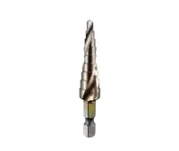 Насадка имеет шестигранный хвостовик 9 ступеней помогают создать оптимальный и точный замер. Такая специфическая конструкция усиливает режущую способность и существенно увеличивает плавность обработки металла.