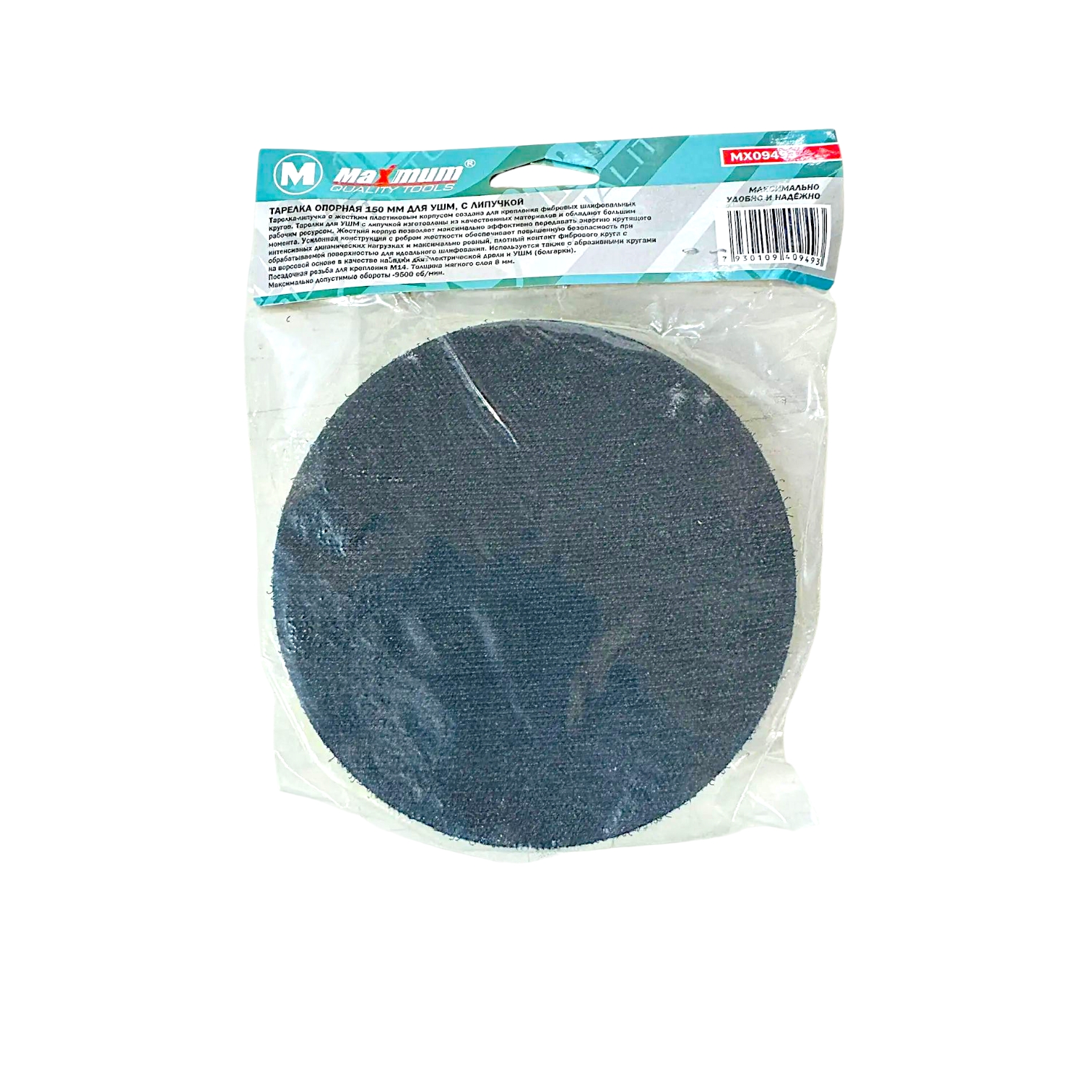 Тарелка опорная 8×125 мм для УШМ, с липучкой, цилиндрический хвостовик, "MAXIMUM" (Максимум)MX 46092