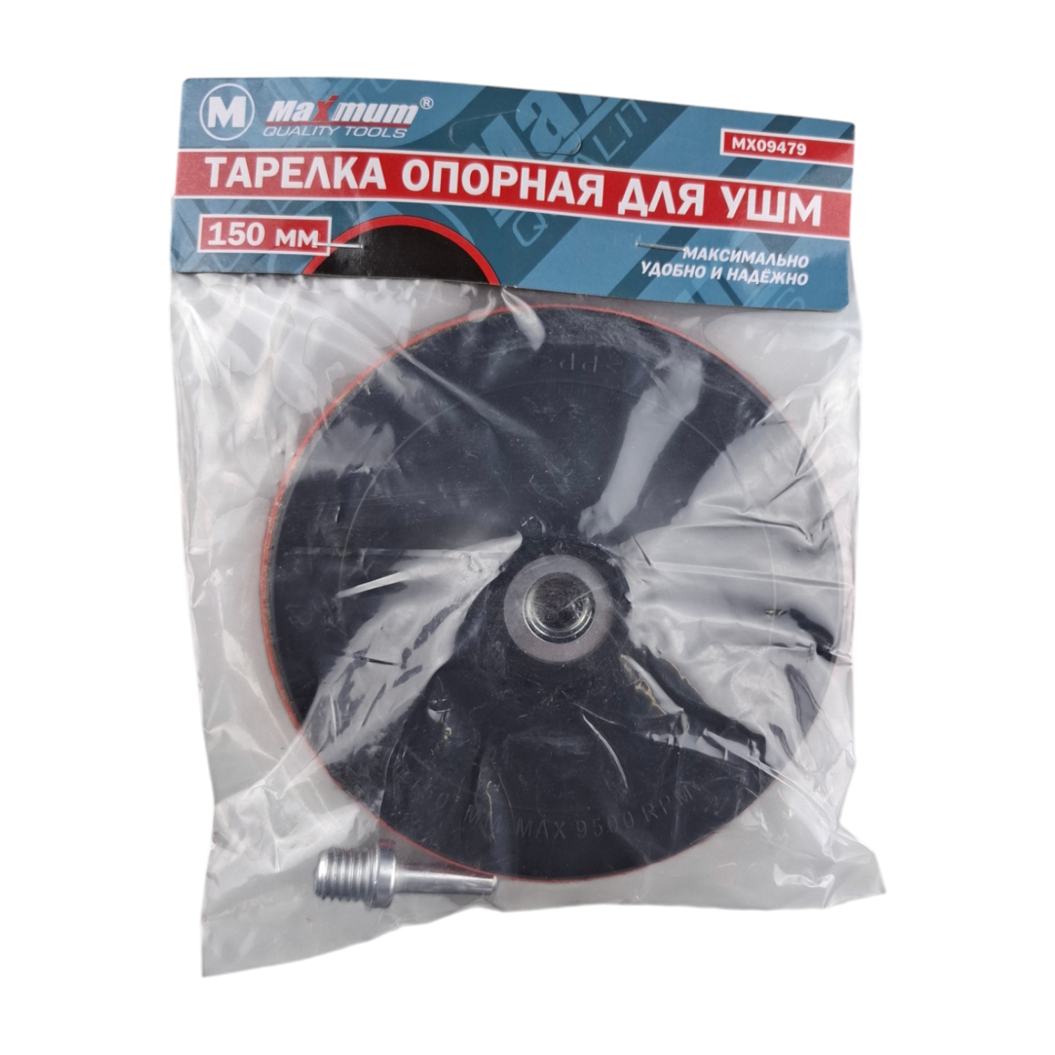 Опорная тарелка 150 мм имеет посадку М 14 и цилиндрический хвостовик длиной 25 мм в комплекте. Опорная тарелка жёсткая для эксцентриковых шлифмашин может работать с максимальным RPM 9500. Насадка выдерживает высокие температуры при работе и длительные нагрузки совместно с дрелью и УШМ.